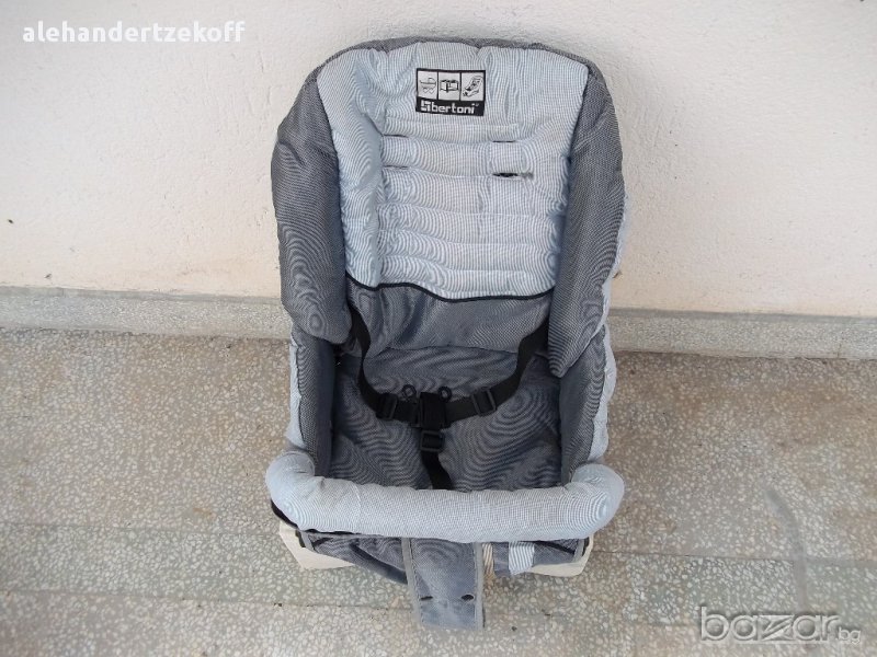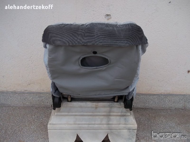 Столчето е с метална конструкция . Лесно приспособимо само с колани или ластици . Текстилните детайли са от изключително здрава и ефектна материя, свалят се с лекота за пране и почистване.Състоянието му е безупречно.Цената може да се коментира до споразумение.