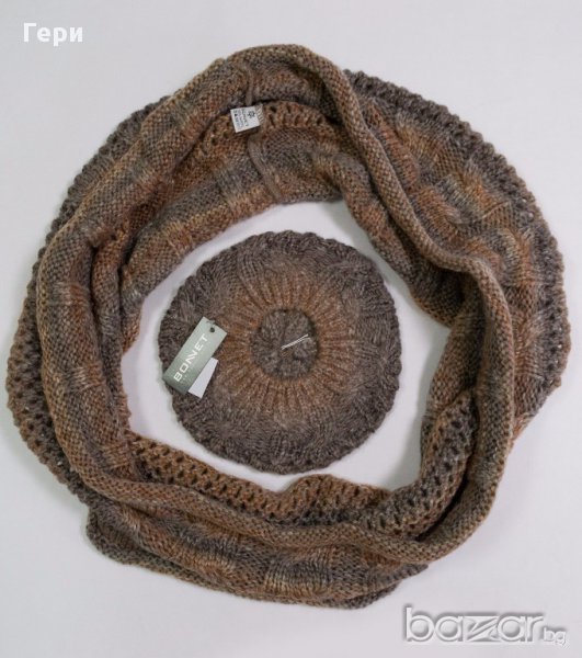 Кафяв дамски плетен комплект от шал и шапка марка Bonnet, снимка 1 - Шалове - 17607477 Кафяв дамски плетен комплект от шал и шапка марка Bonnet, снимка 2 - Шалове - 17607477 Кафяв дамски плетен комплект от шал и шапка марка Bonnet, снимка 3 - Шалове - 17607477 Кафяв дамски плетен комплект от шал и шапка марка Bonnet, снимка 4 - Шалове - 17607477 1/4