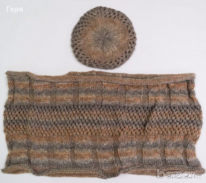Шапката е тип барета а шала е тип обръч с размери 140х34 см