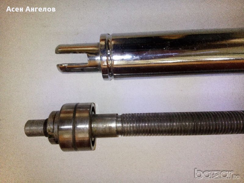 Двуходов винт с милиметрова резба 20мм.навиващ се в цилиндър.Монтирани два броя лагери 6203 подсигурени с два броя контрагайки.Дължина на винта 425мм.