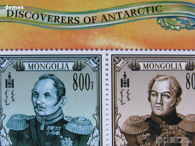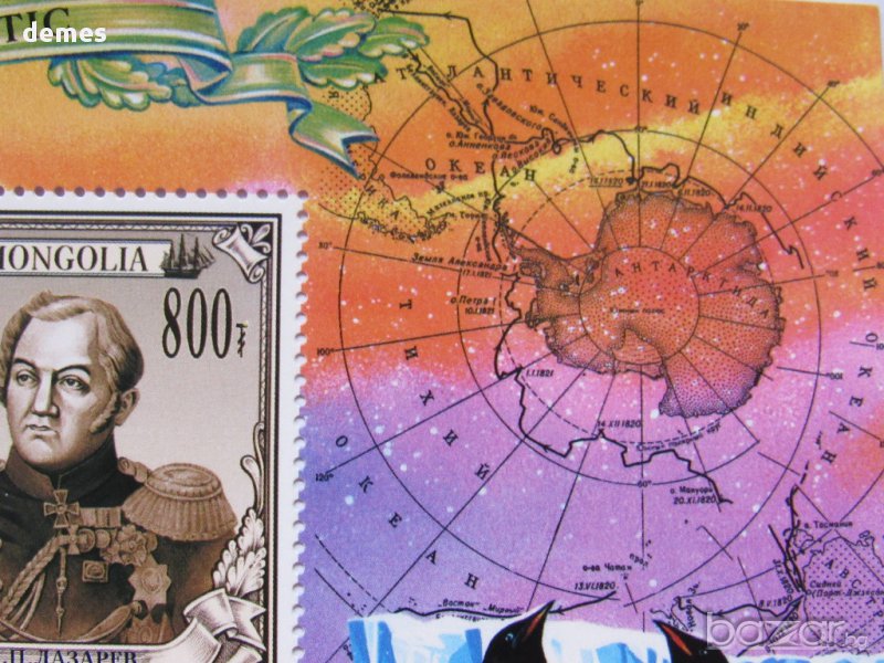 Монголски блок марки - откривателите на Антарктика.