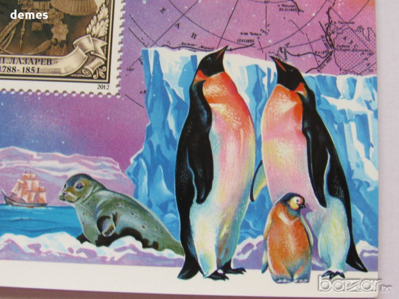 Показва на 2 марки откривателите на Антарктида - изследователите Фабиан фон Белингсхаузен и Михаил Лазарев.