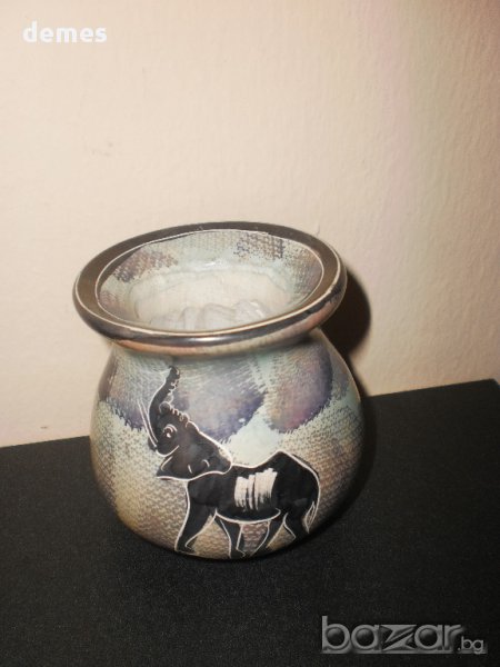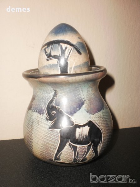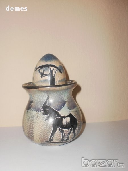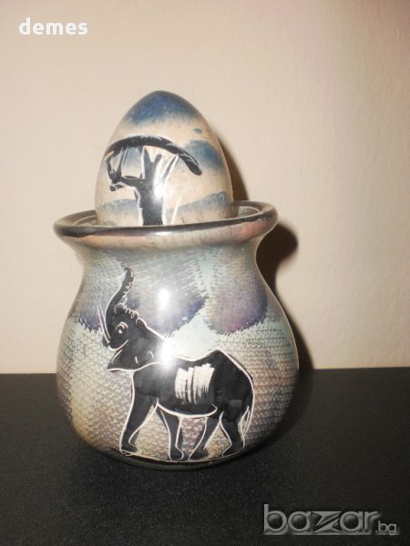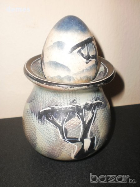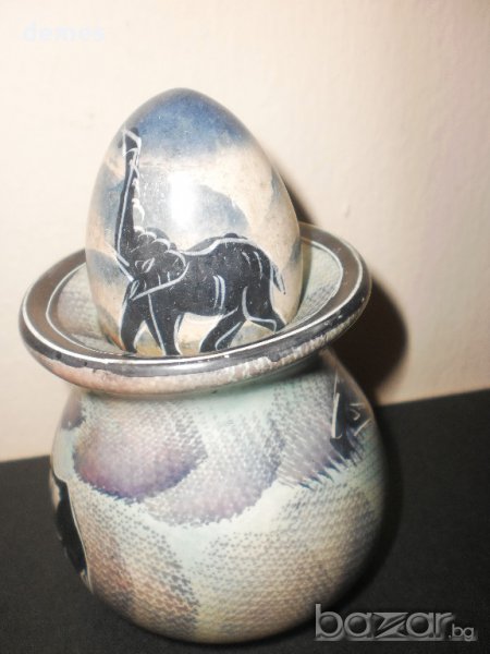 Декоративно яйце с поставка, изработено от сапунен камък.