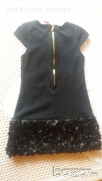 Използвана, но без забележки. Черна на цвят, отдолу на релефни цветя от лъскав плат. Размерите са : обща дължина - 58 см., гръдна - 29 см. Размерът на рокличката е 116 см. На гърба е с цип.