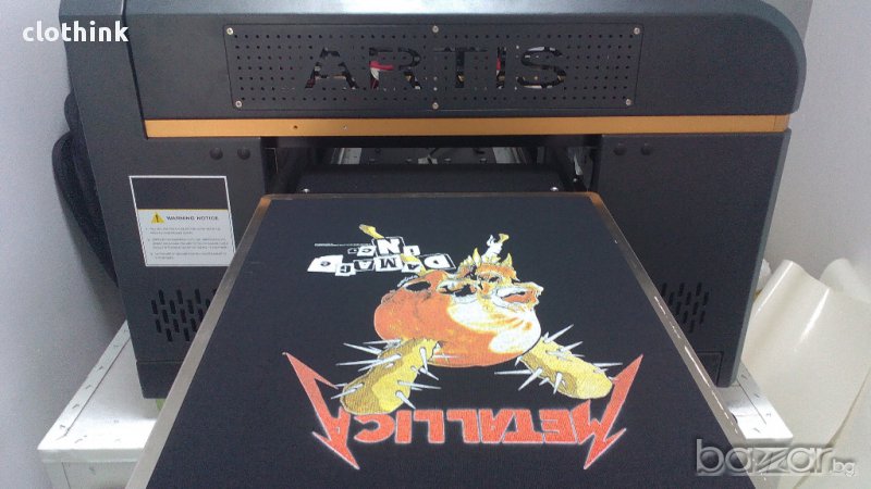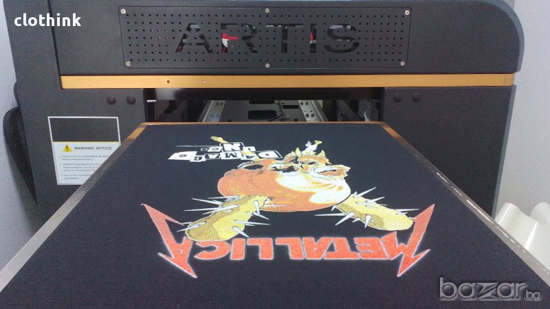 Можем да печатаме върху всякакви цветове тексил (черни, бели, сини, жълти), като печатаме директно върху текстила посредством принтер за директен печат (dtg принтер)