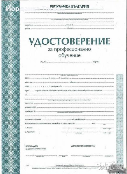 Удостоверение или Свидетелство за професионално обучение от Министерствона образованието с право на работа в страната и чужбина, както и Европейски сертификати на английски или немски език Възможност за разсрочено плащане. Осигурява работа.