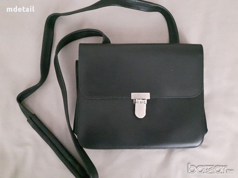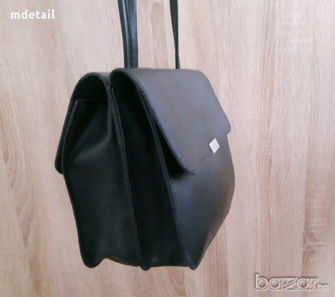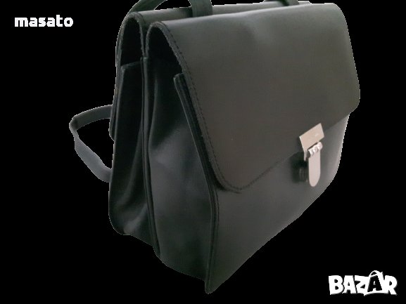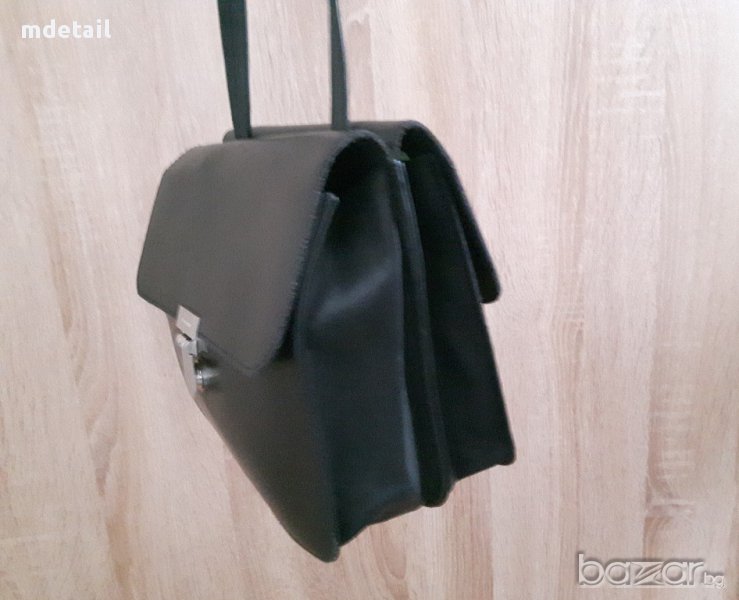 Poco Loco - интересна черна чанта от естествена кожа /има две отделни различни закопчалки, с отделни отделения/