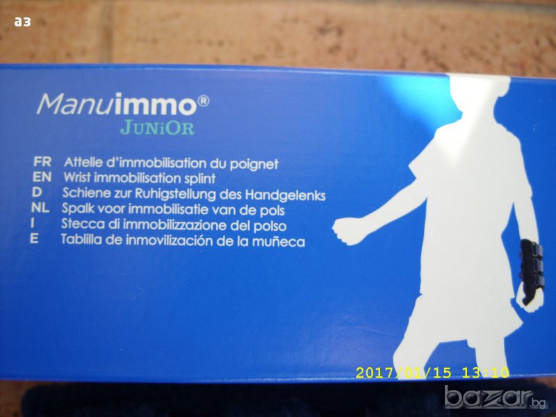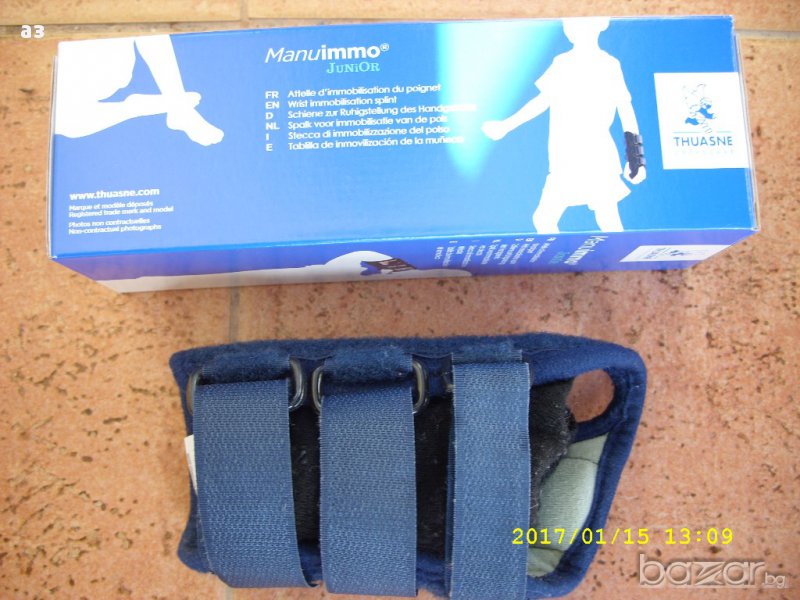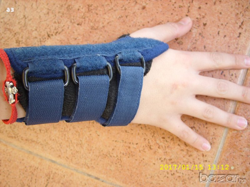 Имобилизираща шина за дясна ръка - Джуниър. За умерени навяхвания на китката, тендинитни и др. увреждания на сухожилията и китката, възпалителни фази при ревматологични заболявания. Носена е 15 дни.