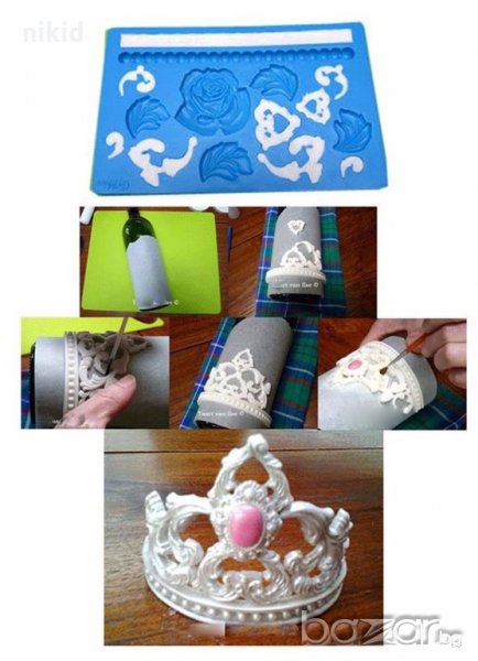 корона роза перли топчета и листа силиконов молд форма украса декор торта фондан шоколад → Обява 17685108