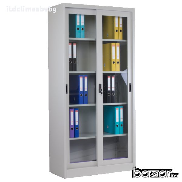 Метален шкаф за документи с плъзгащи стъклени врати 185/90/40см, снимка 1 - Гардероби - 17692837 Метален шкаф за документи с плъзгащи стъклени врати 185/90/40см, снимка 2 - Гардероби - 17692837 Метален шкаф за документи с плъзгащи стъклени врати 185/90/40см, снимка 3 - Гардероби - 17692837 1/3
