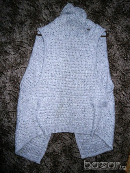 Жилетката е с висока яка в сив цвят. Може да се комбинира с колан или брошка отред. Жилетката е носена, но е запазена и е в отлично състояние. Универсален размер.