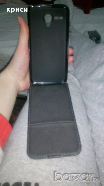 кожен калъф за телефон от еко кожа черен тип тефтер за Леново А 606 в отлично състояние