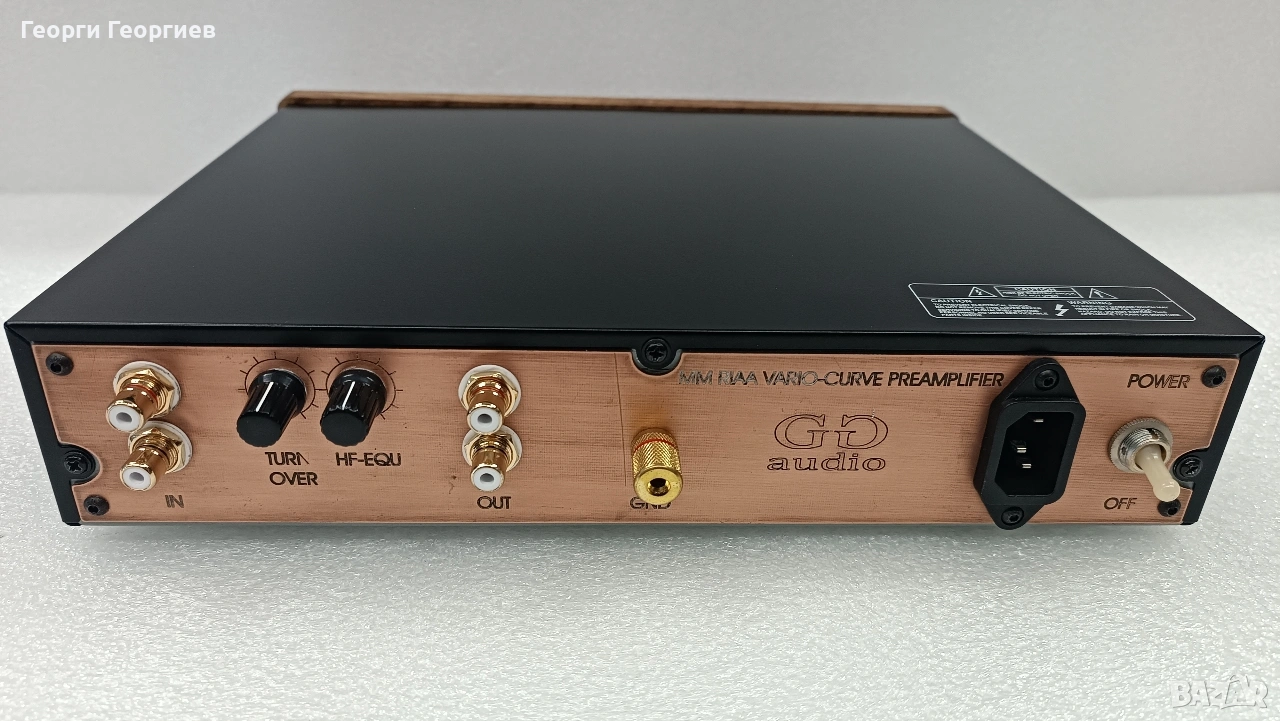 Sanyo OsCon. Изправено и C-R-C-R-C филтрирано отоплително напрежение за лампите, изправянето на анодното напрежение е реализирано с лампа 6Ц5С и многозвенна C-R филтрация. С цел подобряване на отношението сигнал/брум са използвани два отделни захранващи трансформатора - един за отоплителното и един за анодното напрежение на лампите. Това, което отличава този ММ RIAA коректор от останалите на БГ-пазара (и не само) е, че предлага възможност за плавна настройка на RIAA-кривата. Идеята е взаимствана от модела EMT JPA-66 - http://emt-international.ch/e/jpa66.php http://www.toneimports.com/emt/jpa66.html Подробности и описание на Variа-Curve възможностите на модела JPA-66 могат да се намерят в нета.Мога да предоставя коректора за пробно прослушване и сравнение в системата на бъдещия купувач. Параметри: Максимално неизкривено изходно напрежение 35V, отношение сигнал/шум(брум) 83dB, номинално изходно напрежение 0,6V (при входно 5mV). Продава се БЕЗ захранващ кабел. Указаната цена е базова, при желание мога да изработя РИАА с най-висок клас аудио-компоненти, разбира се на друга цена. Цената е валидна при вземане от място или изпращане по куриер, но след авансов банков превод. При куриер и с наложен платеж е с 15% по-висока. Грамофона е декоративен и не се продава!