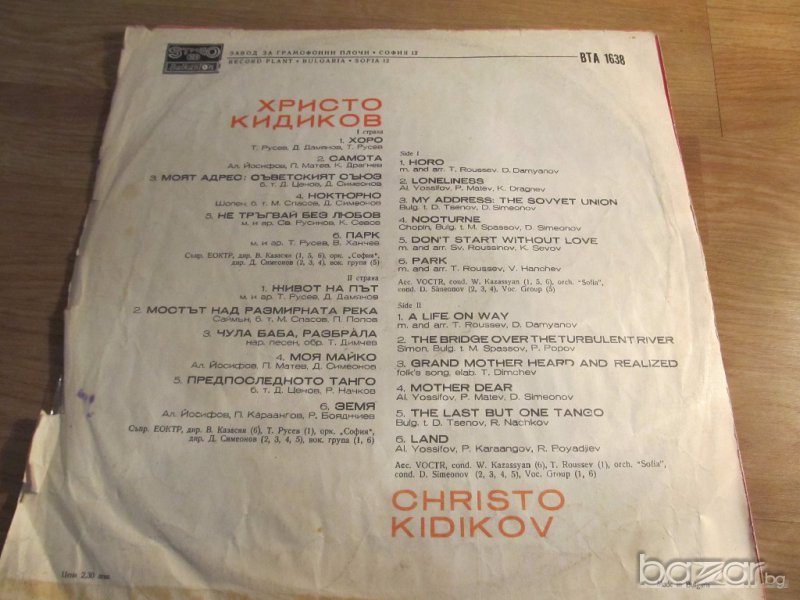 Грамофонна плоча - Христо Кидиков изд.70те години.