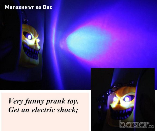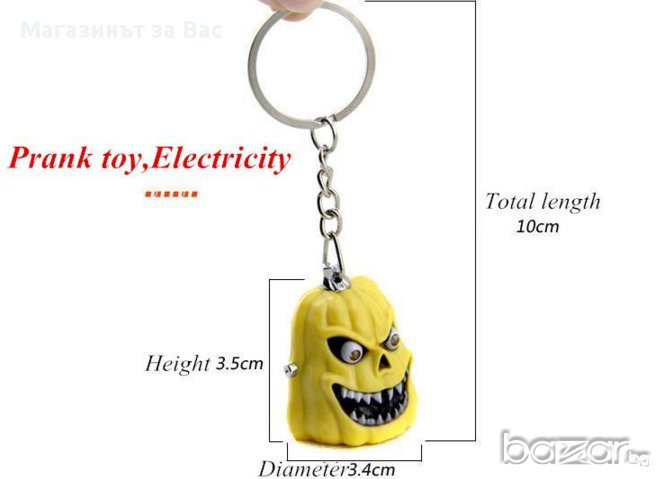 Ключодържателят има два бутона: от единият започват да светят очите на чудовището,а от другият се пуска електрошок.