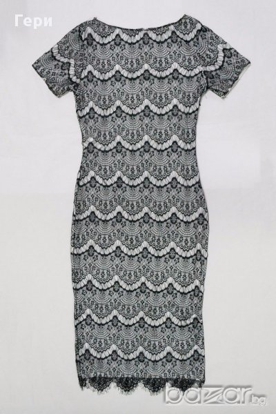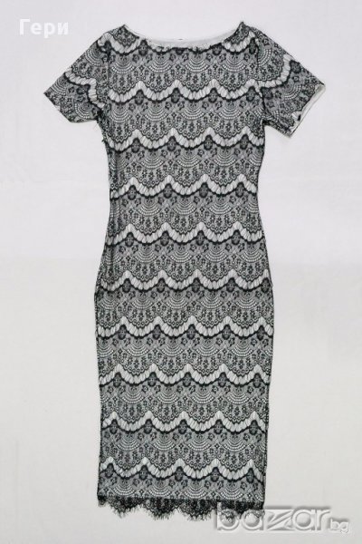 Бяла вталена рокля с черна дантела - M