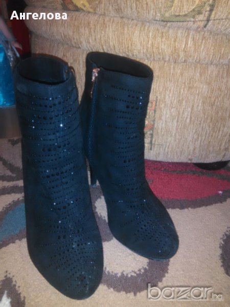 Обувките са носени веднъж за кратко на повод, леки и удобни, но съм свикнала с ниски. Материята е велур с черни камъчета, на живо са още по-красиви обувките.
