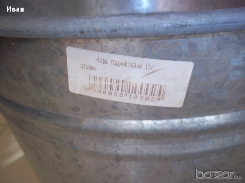 Снимката на обявата е стара. Сега кофата се оказа, че е използвана малко, но няма ражда. Отвън е напръскана леко с варова мазилка предполагам може да се изчисти. Намира се в центъра до пазара. На етикета пише 12 кг, но на мен си се струва, че е по-малка.