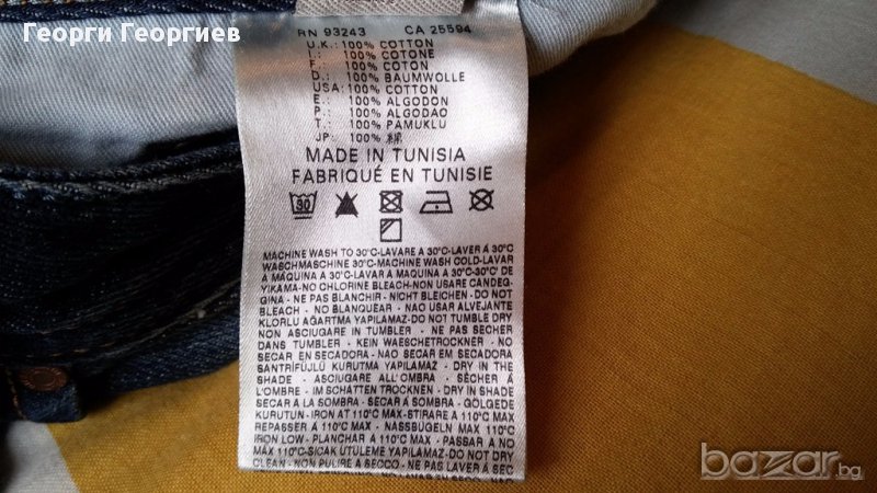 100% оригинални дънки със цвят тъмносин деним, с изтъркан ефект на места, много добре се комбинират със всякакви дрехи.