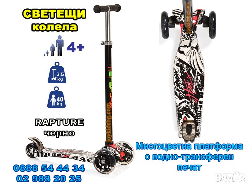 Тротинетка Rapture за над 4год. със ✨ светещи колела ✨ → Обява 17743783