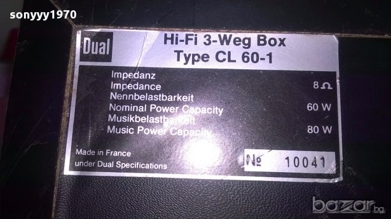 Ретро колекция от dual cl60-1/80w/8ohm-53х35х26см-внос швеицария...за ретро колекция или ползване-стари тежки и масивни с завиден звук...3 лентови хи-фи колони...свирят много здраво и всички говорители са ок...забележки отзад по фолиото...решетките не се свалят-пращаме със спиди или еконт с преглед и тест след превод на капаро за куриерската услуга поради зачестили некоректни потребители-поръчки само тук в саита! по телефона и със смс не! краини цени! бартери не правиме! ПАРИ НЕ ВРЪЩАМЕ! всеки ден нови неща-още 2-3 наши обяви тук