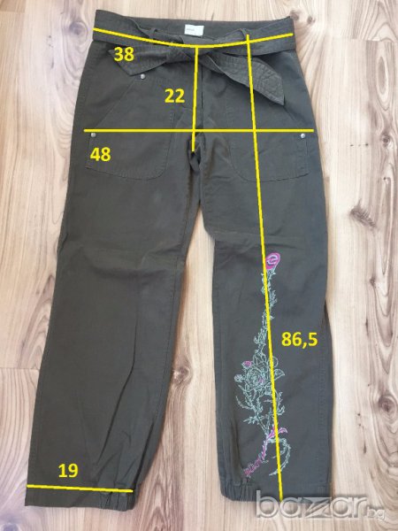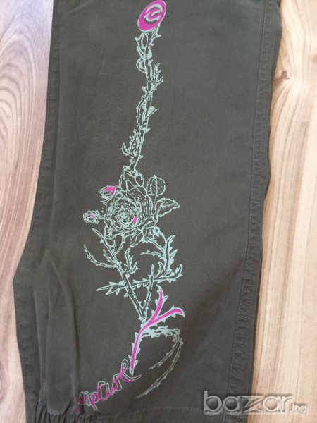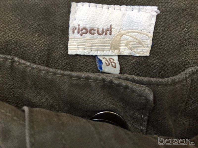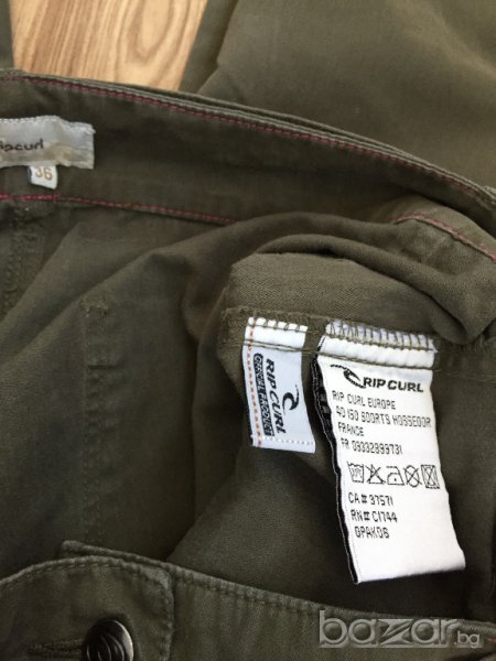 Дамски панталон RIPCURL оригинал, size 36/S, цвят милитъри зелен, щампа цвете с лого на марката на единия крачол, носен два-три пъти, много запазен, отлично състояние, без забележки. Размерите са на последната снимка.