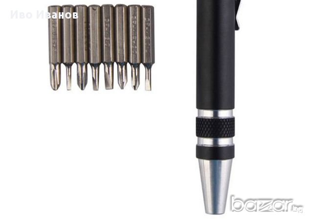 Нова прецизна магнитна отверка с 8 накрайника, модерен дизайн.Комплекта предлага най-използваните накрайници. Накрайниците са от инструментална стомана. Цвят-черен.