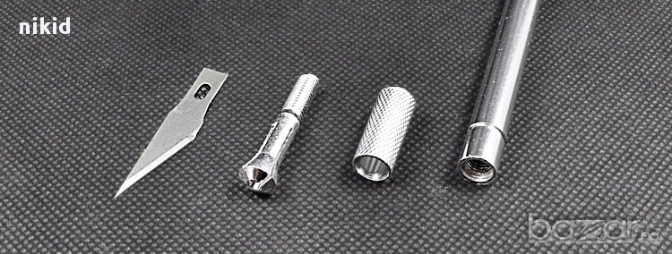 Нов стоманен резец, скалпел за прецизно и точно изрязване. Скалпела е много по-прецизен и остър от предлаганите макетни ножчета. Подходящ помощник за дома и незаменим при дребни ремонти. Масивна дръжка от неръждаема стомана и ултра тънък резец. Скалпела е с дължина 15 см и дебелина 8 мм. С размерите на писалка, може да го носите с вас навсякъде. Има пластмасово капаче (предпазител) вкл.1+5 броя резервни резци