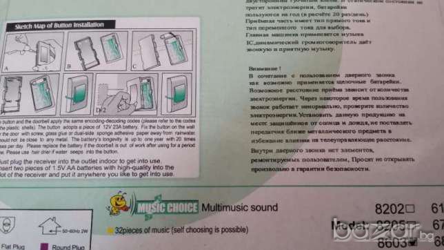 Бутон и приемател изцяло на батерии - мобилен (снимка 2) или бутон на батерия и БЕЗЖИЧЕН приемател на 220V в контакт (снимка 3). УТОЧНЕТЕ ОТ КОЙ ВАРИАНТ ИСКАТЕ!