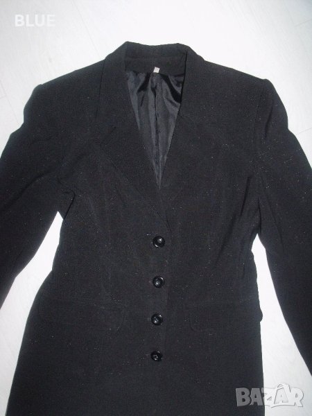 Стилно официално черно сако. Страхотна леко вталена кройка, отлично качество. Сакото има много фини и нежно искрящи нишки. Ширина под мишниците - 50 см. Талия- 46 см. В долната част е 55 см. Дължина 70 см.
