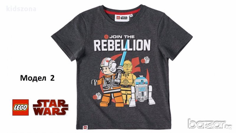 Детска тениска къс ръкав Lego Star Wars. Оригинал, лицензиран продукт, внос от ЕС. Фино, качествено трико. Модел 1 и 3 - 100 % памук. Модел 2 - 60% памук и 40% ПЕ. Обло деколте.
