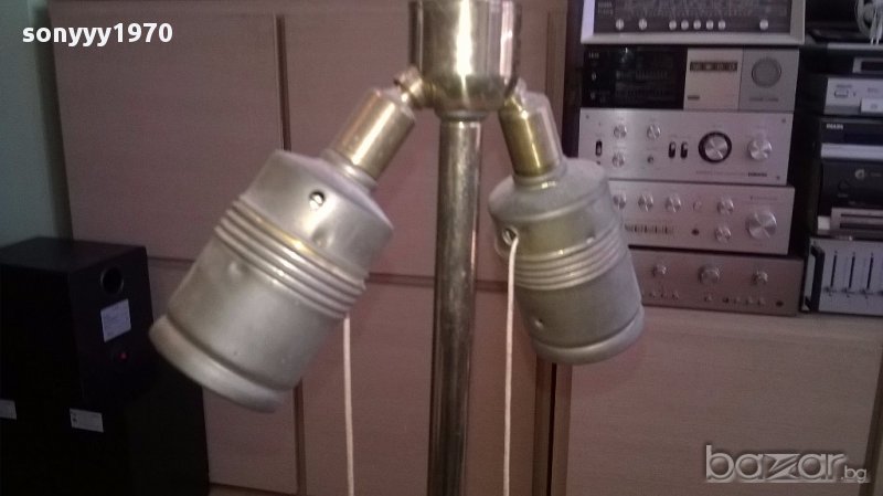 Масивна ретро лампа за две крушки-месинг 80х35см-внос швеицария...антика-стара и масивна...с две въженца за пускане на двете крушки поотделно...тежка и масивна изработка...80см висока...нов внос-пращаме със спиди или еконт с преглед и тест след превод на капаро за куриерската услуга поради зачестили некоректни потребители-поръчки само тук в саита! по телефона и със смс не! краини цени! бартери не правиме! ПАРИ НЕ ВРЪЩАМЕ! всеки ден нови неща-още 2-3 наши обяви тук