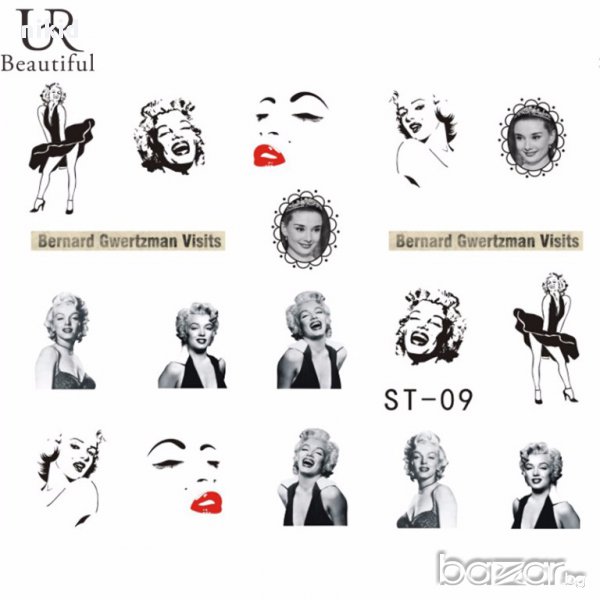 ST09 Мерилин Монро лица татос ваденки водни стикери за нокти маникюр → Обява 17800512