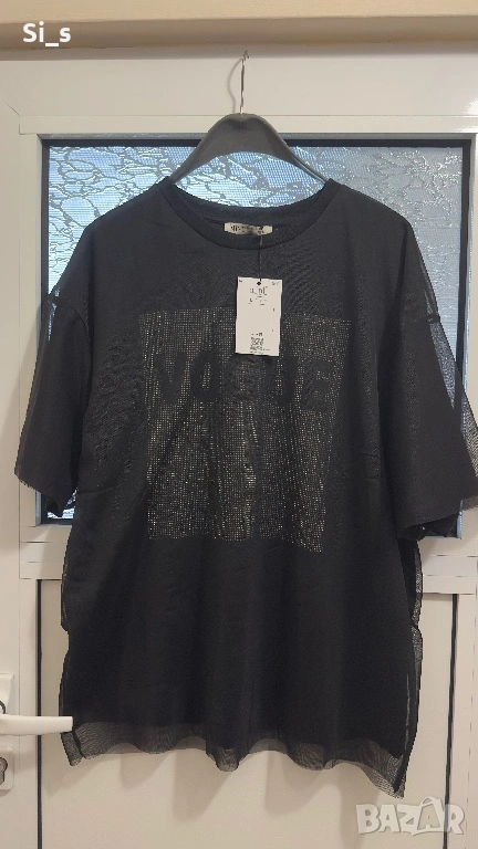 3.Черна тениска с камъни и отгоре цялата в тюл Л размер но уголемена за 120см в свободно състояние с етикет-14€