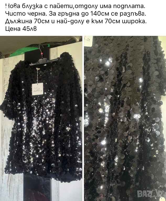 2.Черна нова блуза с големи пайети за 130гръдна -22€