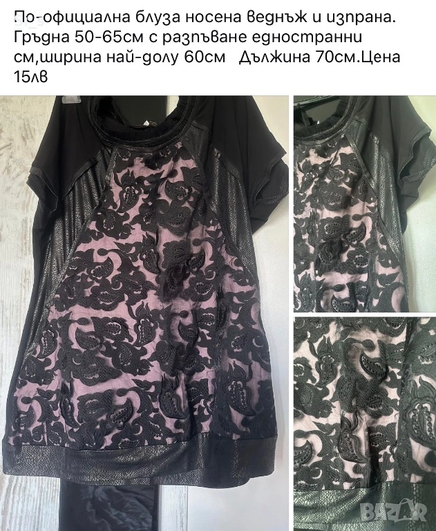 5. По-официална блузка умалена 56 номер но има см на снимките измерени по нея. Слагана веднъж- 9€