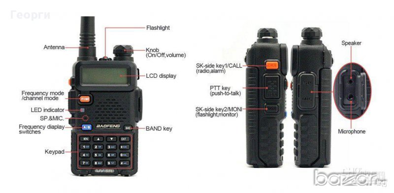 радиостанция, мощност 8W,честоти VHF/UHF с двустранно радио предаване 136-174/400-520Mhz, модел BAOFENG UV-5R ( СНИМКА 1,2,3 и 4 ) цена: 58,00 лева + 1 година гаранция