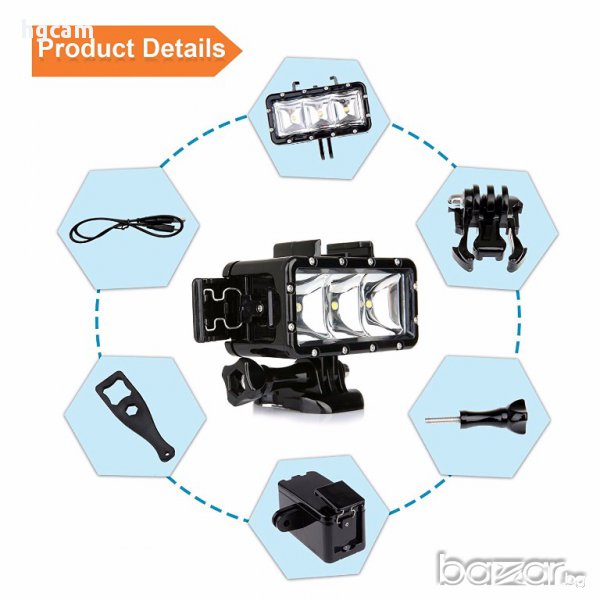 GoPro Hero 1/2/3/3+/4/4s/5/5s/session/SJ4000/SJ5000/Xiaomi Yi . Към осветлението могат да се закрепват и допълнителни аксесоари.