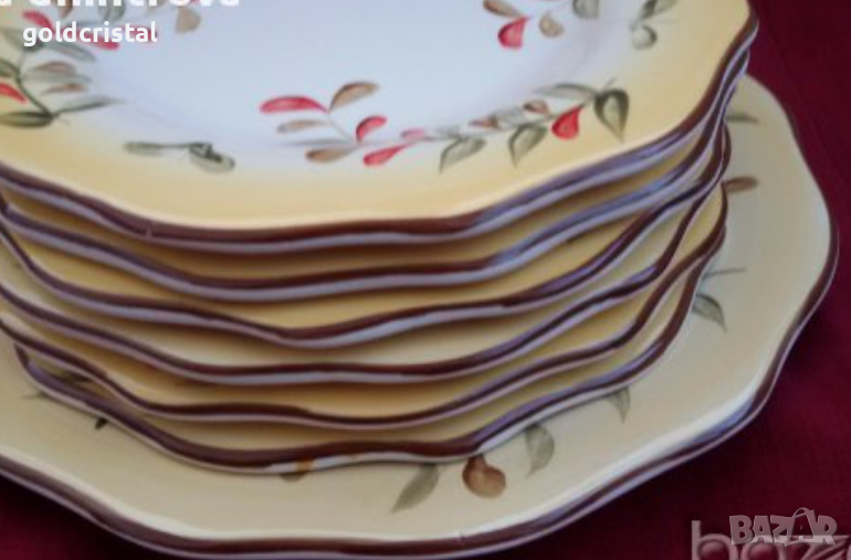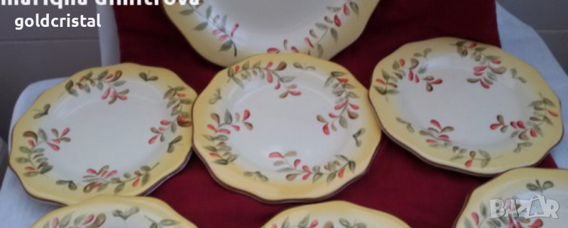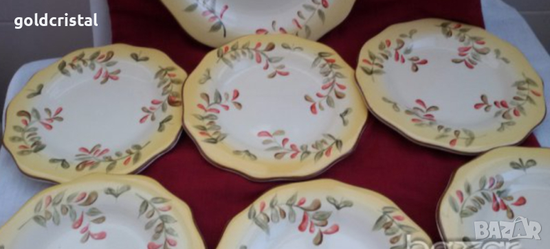 Стар порцелан ръчно рисувани чинии 6бр чинии плюс 1бр голямо плато чиния рисуван порцелан сервиз комплект сет лот ретро арт декор винтидж колекция комплект сет лот стари антикварни предмети обзавеждане за дома и семейството подходящи за подарък за ценители и колекционери