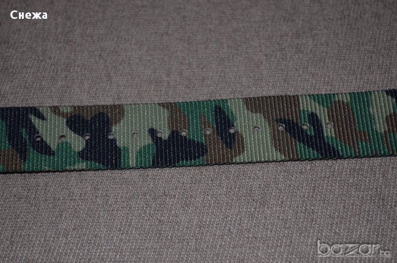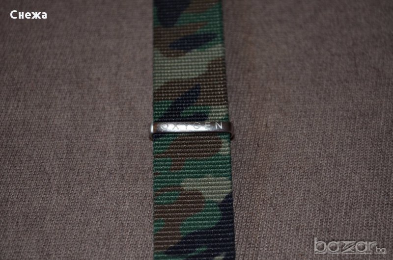 Каишката е чисто нова. Оригинална е на Френската фирма OXYGEN. НАТО G10 модел е и е изработена от найлон в камуфлажен цвят. Брандирана стандартна метална тока за закопчаване и 3 бр. метални халки. Надпис на фирмата на едната халка.