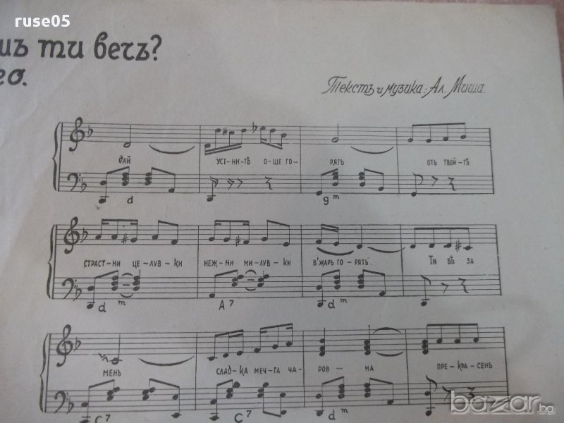 Ноти "Не ме ли любишъ ти вечъ - Танго - Ал. Миша" - 4 стр., снимка 1 - Специализирана литература - 17854850 Ноти "Не ме ли любишъ ти вечъ - Танго - Ал. Миша" - 4 стр., снимка 2 - Специализирана литература - 17854850 Ноти "Не ме ли любишъ ти вечъ - Танго - Ал. Миша" - 4 стр., снимка 3 - Специализирана литература - 17854850 1/3