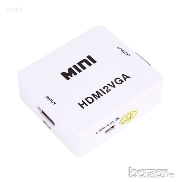 + Преобразува сигнала от HDMI изход на лаптоп, компютър, таблет, PS, TV Box и др. към VGA вход на монитор, ТВ, проектор и др.