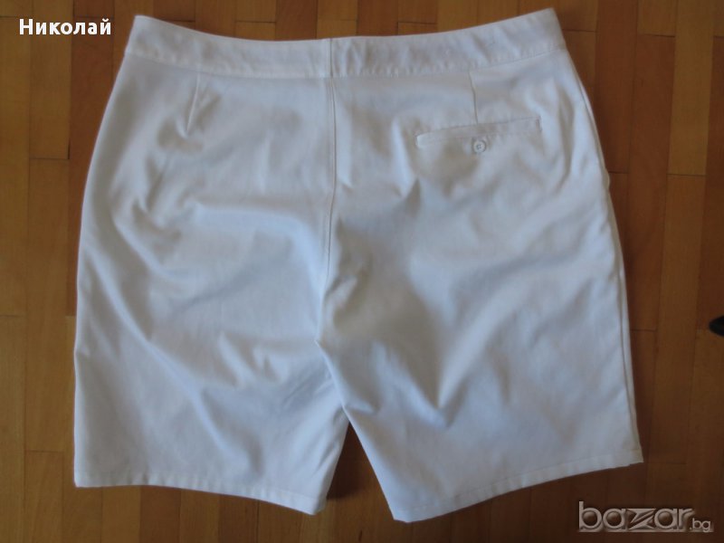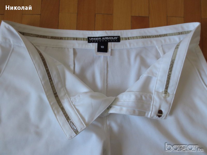Снежно бели са и са в перфектно състояние.Имат два странични джоба и един заден. Номер 10-нямам идея на какво отговаря за това давам размери за да си ги сравните