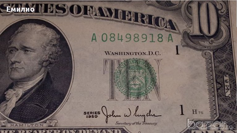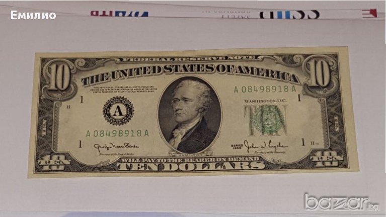Продавам $ 10 Долара от 1950 год.F.R.N Sign of CLARK/SNYDER. Изключително Добре Запазена Банкнота и има Само 7 Цифри в Серийния Номер. Цена € 60 евро. ВАЖНО!!! НЕ ПРАЩАМ С НАЛОЖЕН ПЛАТЕЖ. СОФИЯ МОЖЕ И ЛИЧНО ПРЕДАВАНЕ, ЗА ОСТАНАЛИТЕ НАСЕЛЕНИ МЕСТА ПРЕДВАРИТЕЛНО ПЛАЩАНЕ ПО БАНКОВ ПЪТ ИЛИ ИЗИПЕЙ.