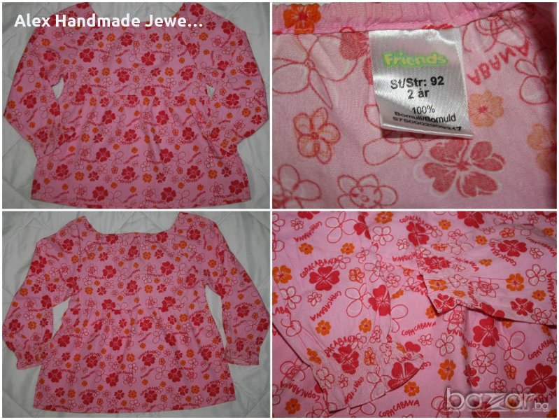 5. Цена 1,50 евро. Нова памучна рокличка - туника с дълъг ръкав Friends. Без етикет. 100% памук. По етикет е размер 92 см./2 г. Дължина: 44,5 см.; мишници: 31 см.; ръкав: 40/28,5 см.