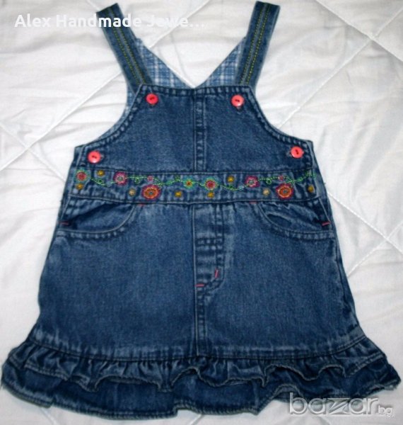 1. Цена 1 евро. Дънково сукманче Mothercare. 100% памук. По етикет е размер 18-24 м./92 см. Външно без следи от употреба. Дължина с презрамките: 45,5 см., мишници: 24,5 см.