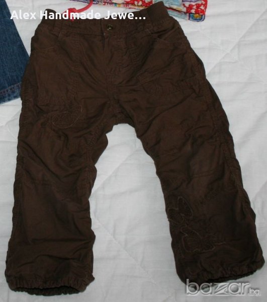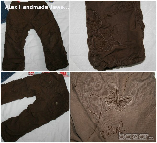3. Цена 1 евро. Панталонче H&M - кафяво с красиви пеперуди. одплатено с памучна подплата. По етикет 18-24 м. 100% памук. Без забележки. Дължина: 52,5/35 см.; Талия: от 25 до 31 см.; Ханш: 33 см.