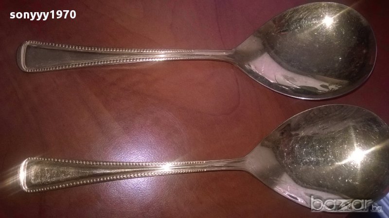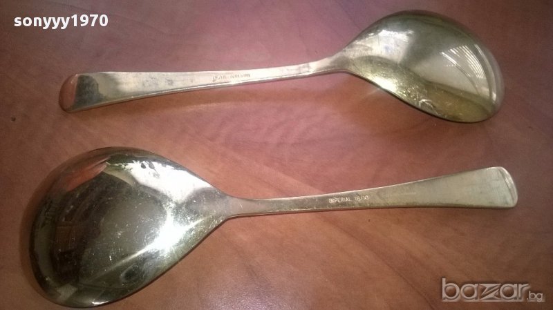 комплект богаташ-Imperial 18/10-23/24 karat hartvergoldet-лъжици 21х6см-внос швеицария...2броя-златни лъжици голями за сервиране...като нови...маркови и стилни...за колекция или ползване...2 броя-от днес 28.02.22г пращаме със спиди или еконт с преглед и тест след превод на капаро за куриерската услуга поради зачестили некоректни потребители-поръчки само тук в саита! по телефона и със смс не! краини цени! бартери не правиме! всеки ден нови неща-още 2-3 наши обяви тук