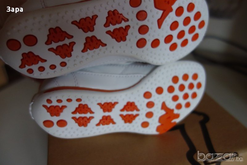 Нови, бели маратонки от изкуствена кожа Kappa. С лепка са и са лекички. Стелка - 15.5см. Имам няколко бройки, само 24ти номер е наличен вече.