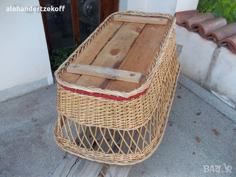 Синият кош става и за количка, гюрукът се сваля може и да се отстрани.Коша е ползван малко ,има нужда от частичен ремонт -120лв.Плетените кошчета са ръчна изработка. Пластмасовият е в стил ,,art deco'' - продаден , дървеният е класически плетен кош.И двата са в безупречно състояние -150лв за брой. И трите коша са от 70те години . Цените може да се коментират.